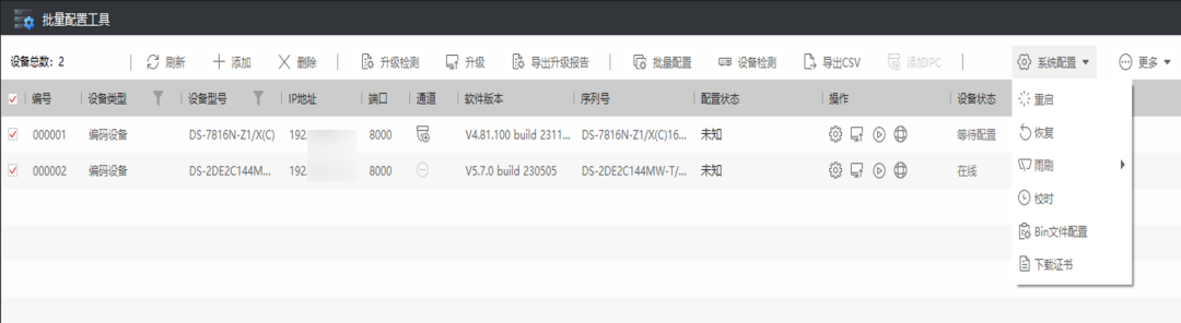 大量设备批量激活、改IP、校时、参数配置等调试场景