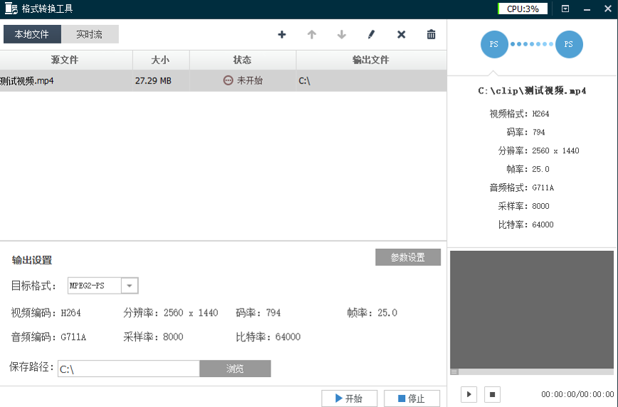 1、添加本地文件,填写输出格式,开始转换即可