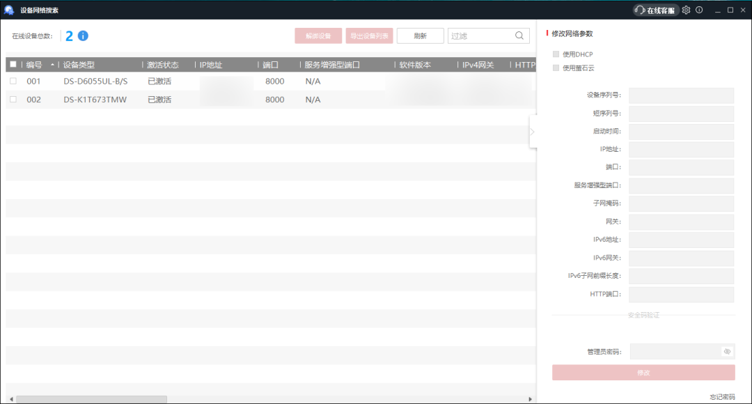 设备的快速查找、快速激活、密码重置、设备网络信息修改基础功能