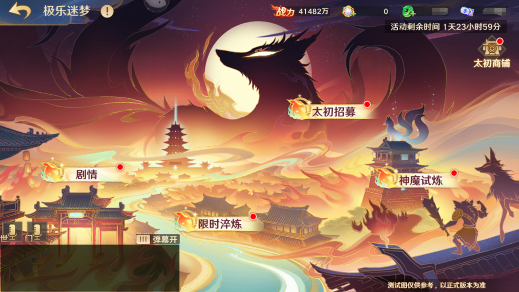 活动总共分为剧情体验、太初招募、神魔试炼和限时淬炼4个部分。