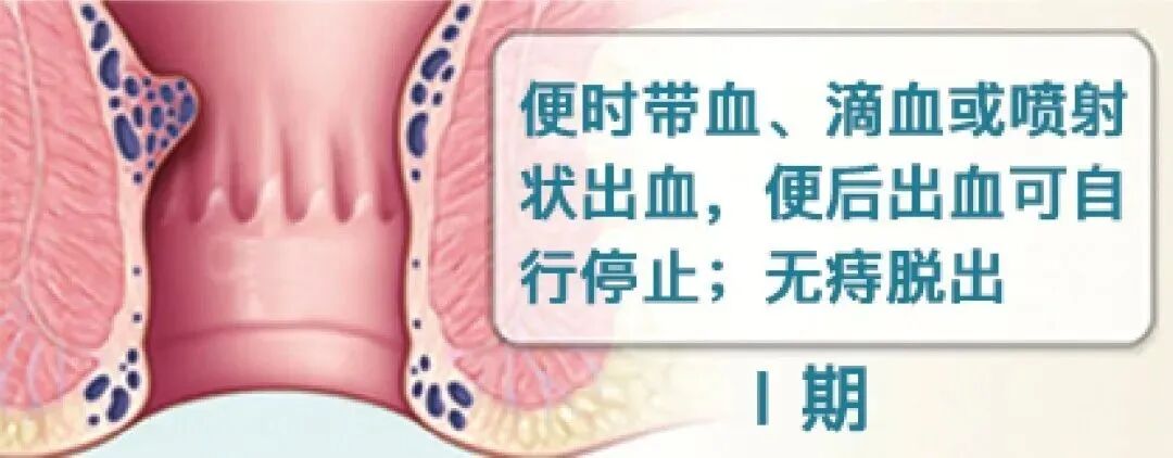 1度——便时带血、滴血或喷射状出血,便后出血可自行停止;无痔脱出。