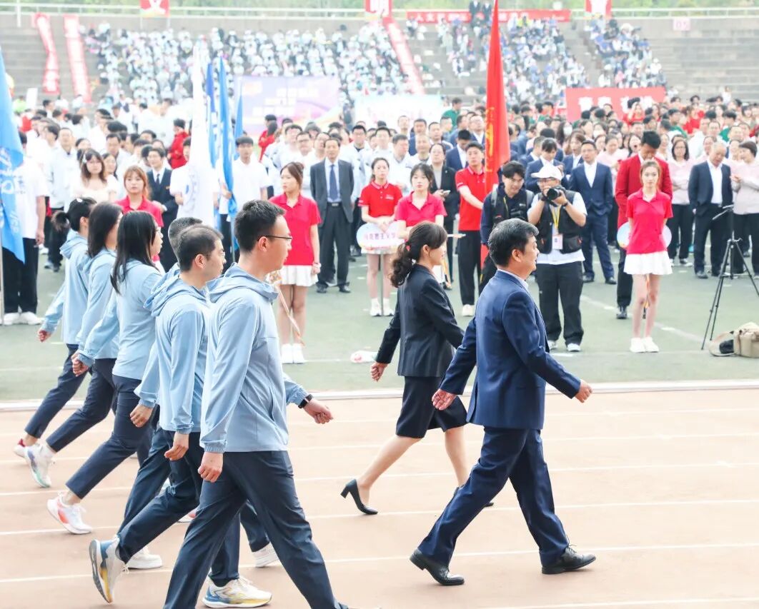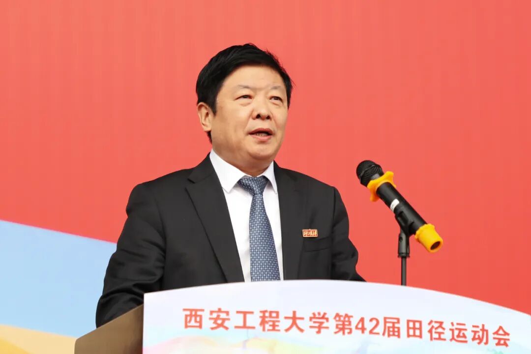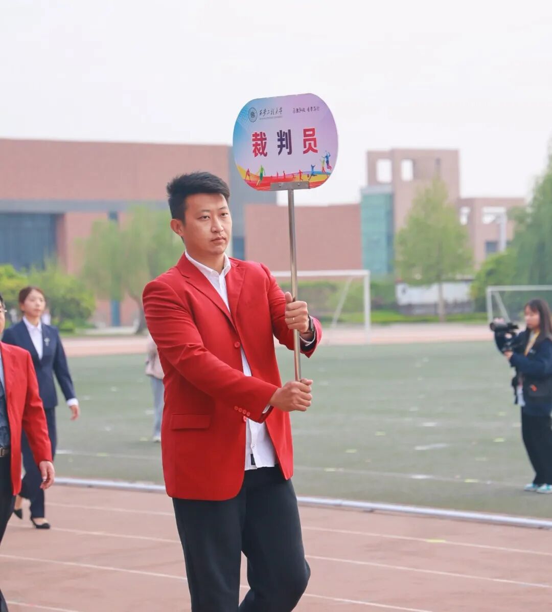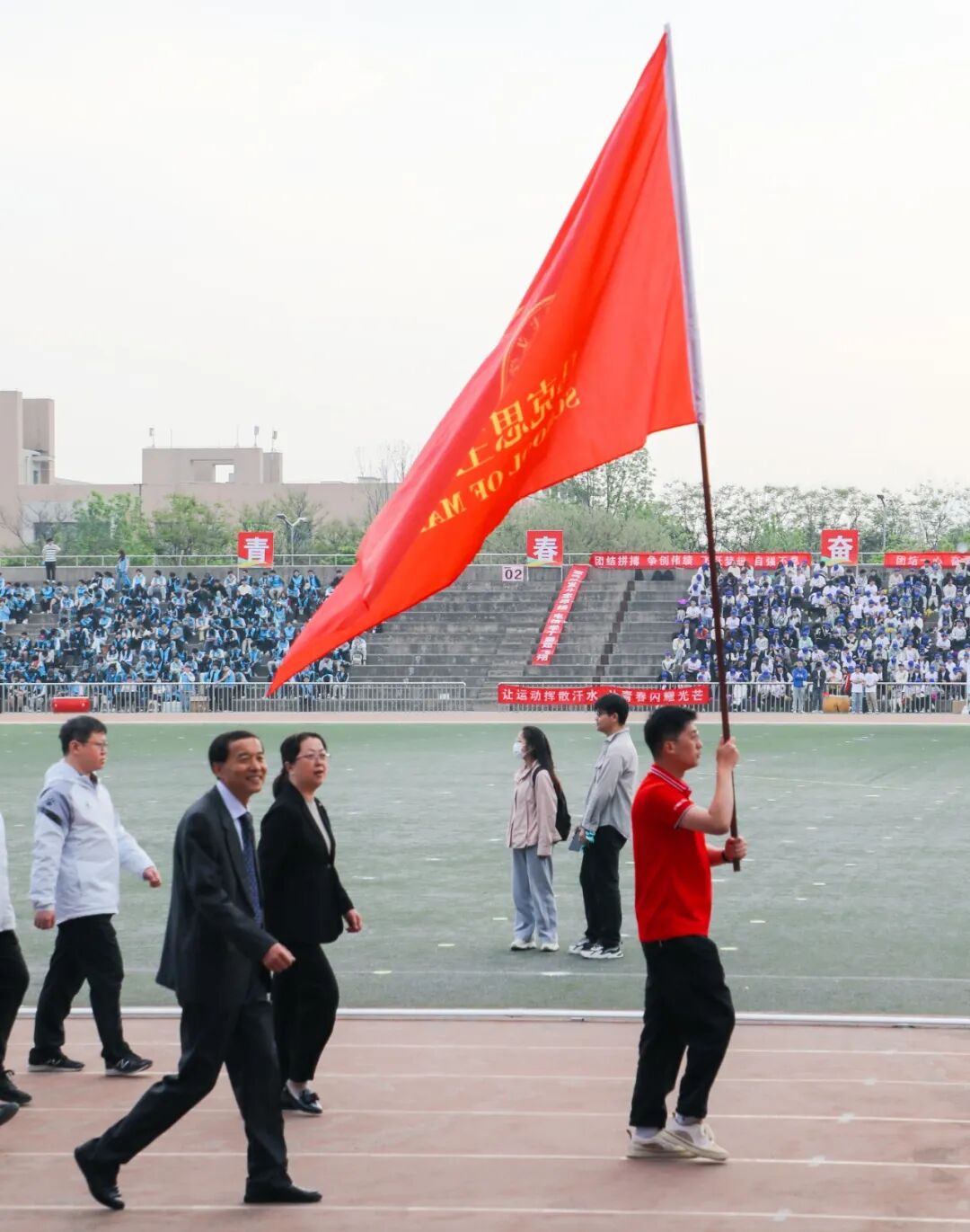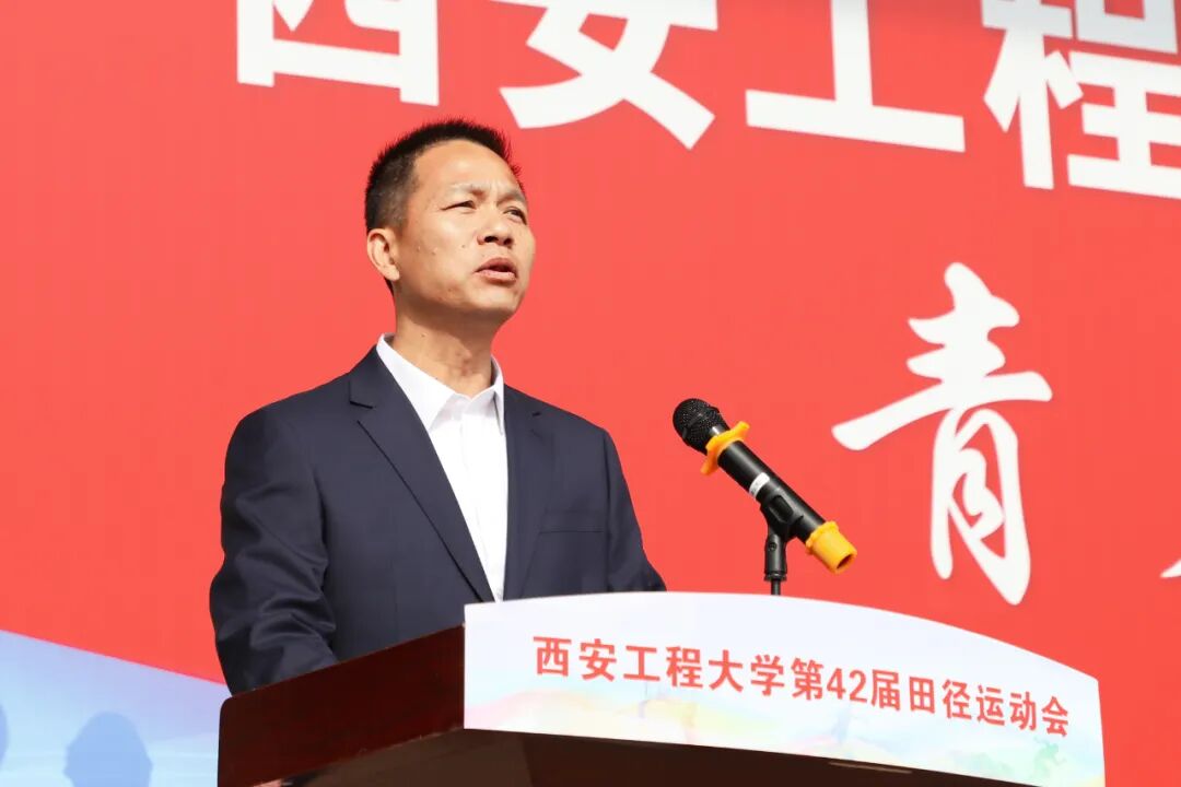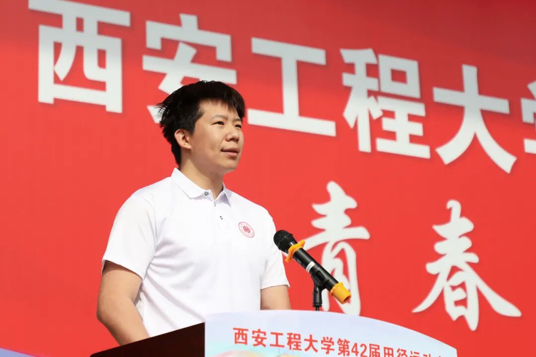 国家一级裁判、体育部教师胡永老师代表本届运动会裁判员宣誓。陕西省大学生田径运动会男子标枪甲组第一名、机电工程学院梁新鹏同学代表本届运动会运动员宣誓。