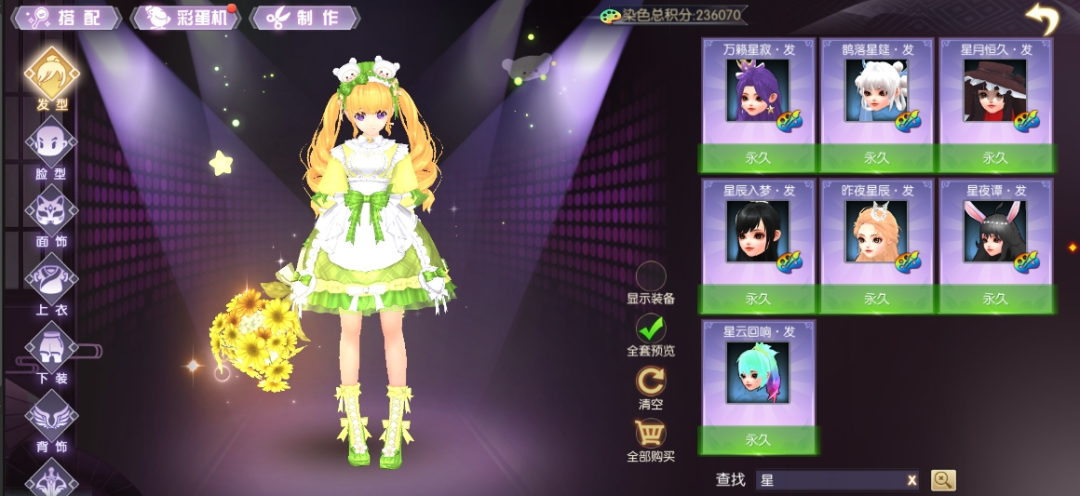 衣橱中汇总了所有外观部件,