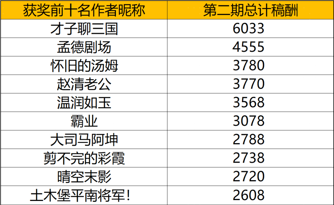 酬劳前10名获奖公示