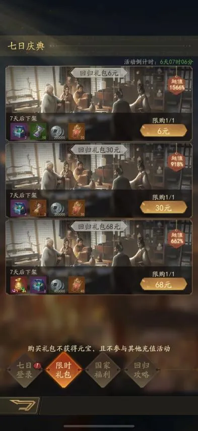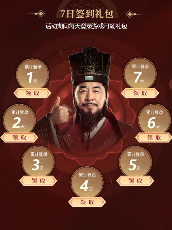 活动设置共7个累计登录签到礼包,
