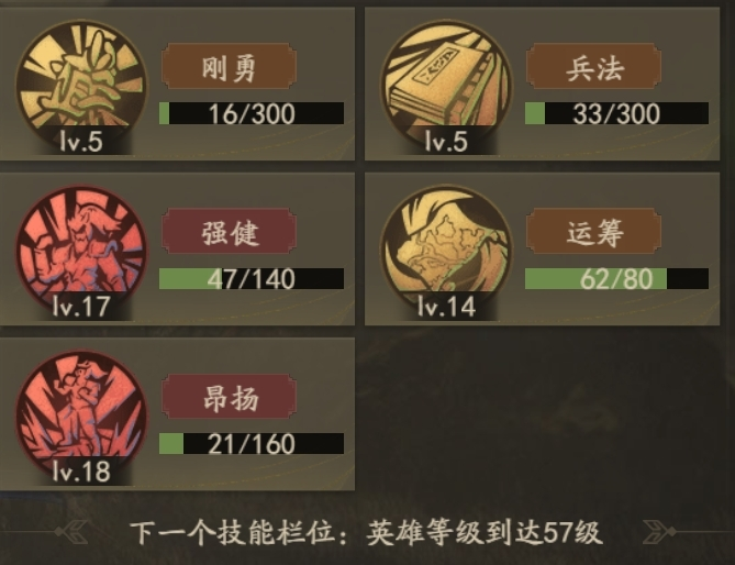 壁垒+奋战+金盾+冲锋+反击,这5个技能除了壁垒优先级最高,其他4个都是谁的碎片多去学谁。30级学习第三个步兵技能,45级学习第四个,60级学习第5个。