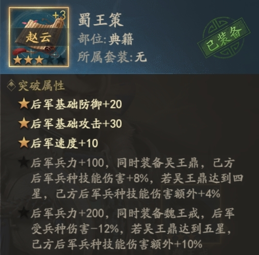 三王套可以作为前期过渡使用,也可以一直带着,主要看自己的赵云需要提升哪一方面,需要提升四维,则考虑带36策。
