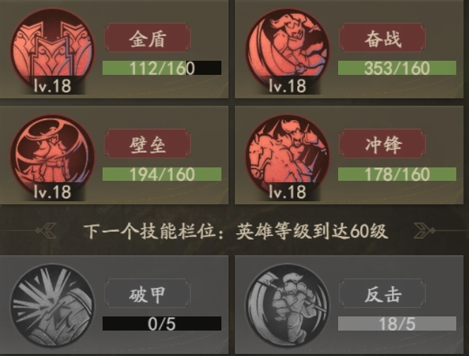 壁垒+冲锋+金盾+奋战+反击+破甲
