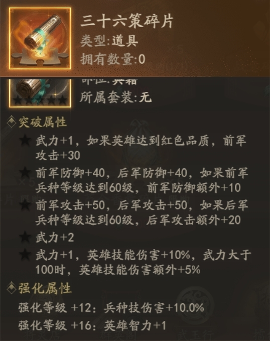 突破材料:檀纸+36策碎片