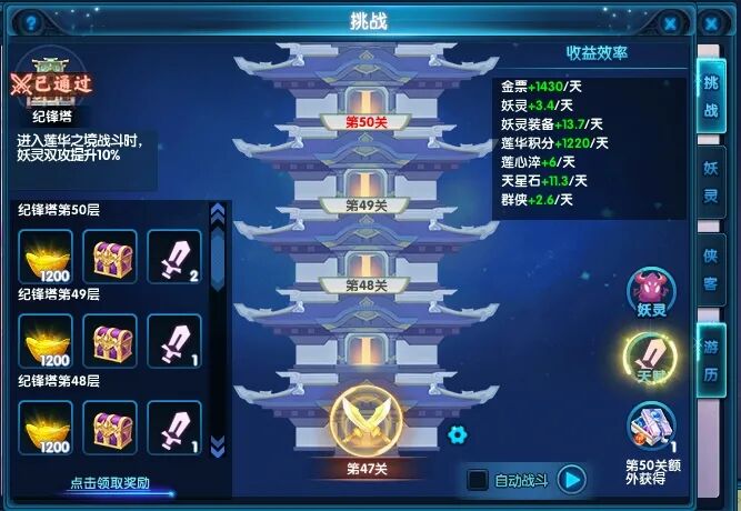 大幅增加游历奖励&挑战奖励