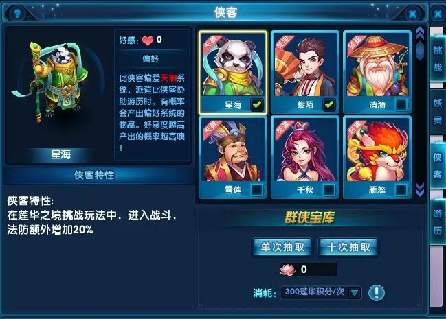 调整侠客数值&挑战天赋数值