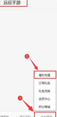 ①点击《远征手游》公众号导航栏中的礼包服务→福利充值;