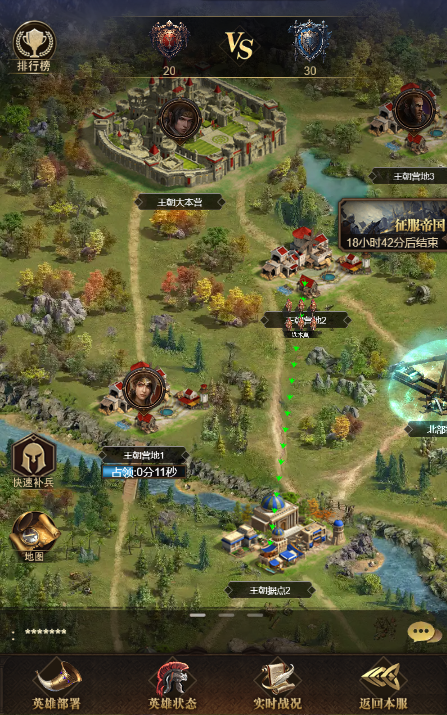 帝都:活动开始40分钟后开启进攻,占领后与帝都相邻的友方城池可获得5分钟保护罩,占领后获得50积分