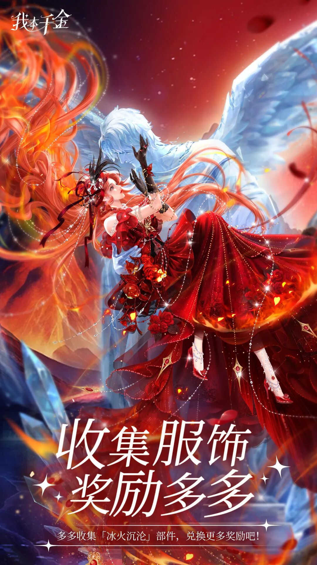 集齐1件【冰火沉沦】系列服饰并晒图可获得【游戏中等礼包】