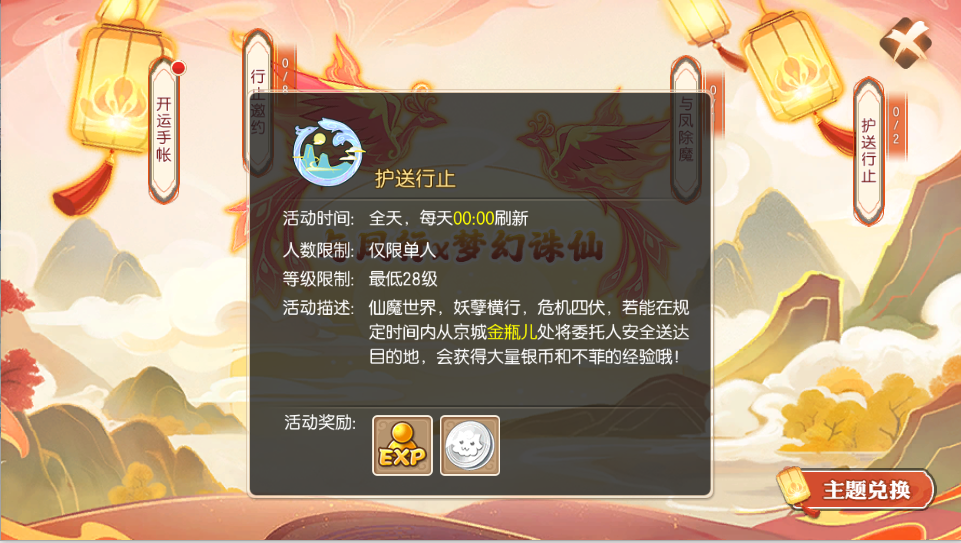 活动期间,仅限等级在28级以上的少侠单人参与,护送结束后可以获得大量的银币奖励哦!