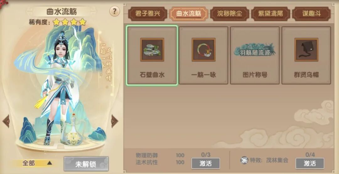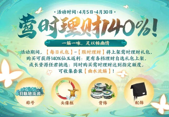 购买莺时理财达到指定额度,可收集套装【曲水流觞】。
