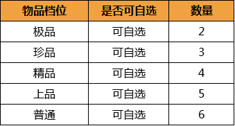 1、本期前世今生物品,共分为5档:极品、珍品、精品、上品、普通,均可自选。