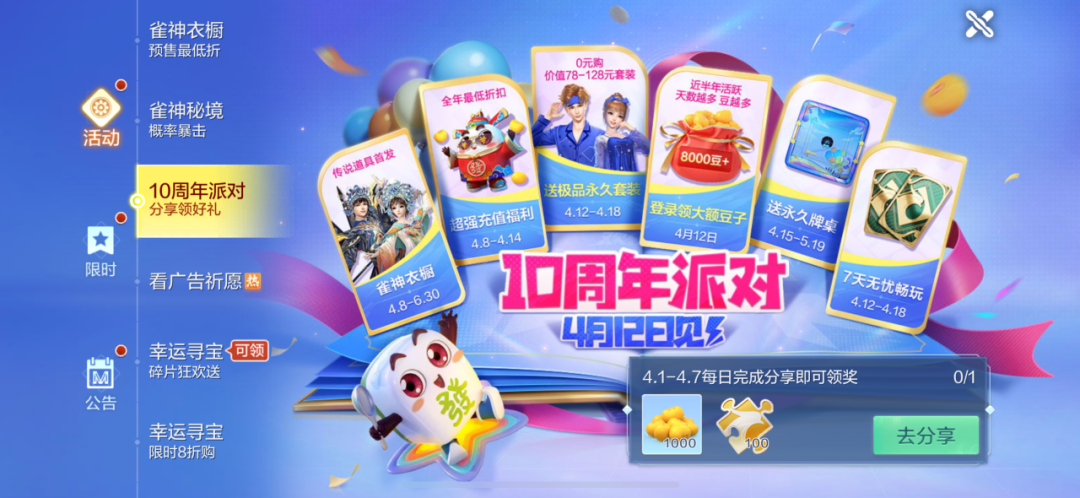 别忘了每日分享十周年派对活动界面哦~