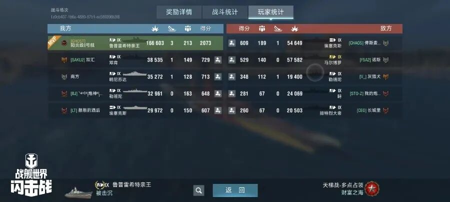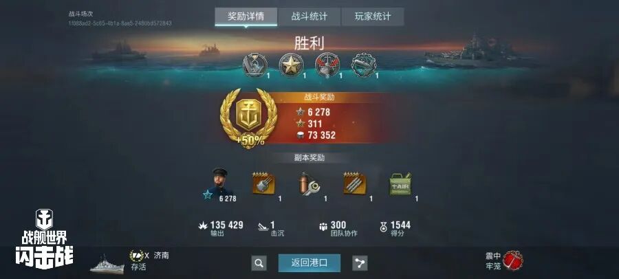 舰长@阳炎级8号舰驾驶D系IX级战列舰鲁普雷希特亲王主炮命中35发,副炮命中407!鱼雷命中19发,击中核心区1次,击毁敌方战舰3艘,总伤害16W+!恭喜舰长获得战斗胜利~