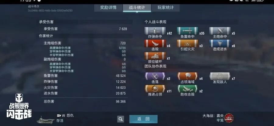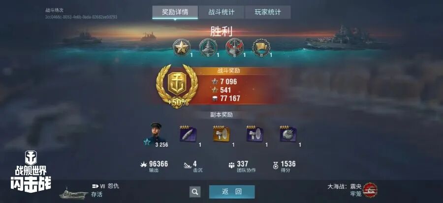 舰长@哈利艾琳驾驶Y系VIII级航空母舰怨仇炸弹命中42发,鱼雷命中35发!击毁敌方战舰4艘!造成进水6次!总伤害9w+!恭喜舰长获得战斗胜利!