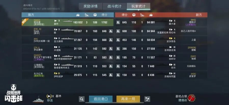 舰长@密苏里驾驶M系X级驱逐舰基林主炮命中221发!鱼雷命中26次!击毁敌方战舰3艘,造成敌舰进水4次!总伤害16w+!恭喜舰长获得战斗胜利~