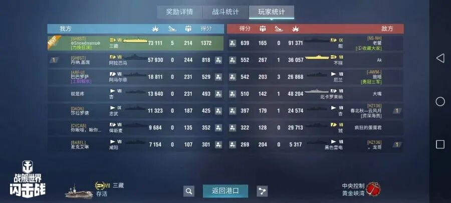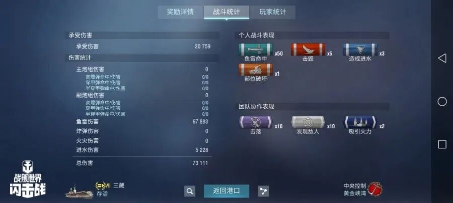 舰长@Snowdream驾驶C系VIII级航空母舰三藏鱼雷命中50发!击毁敌方战舰5艘!造成进水3次!总伤害7w+!恭喜舰长获得海怪来袭与最后希望两种史诗勋章!