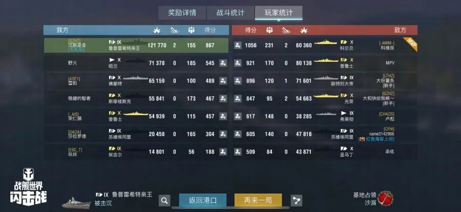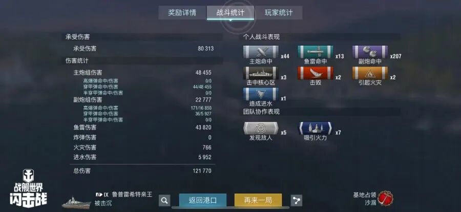 舰长@沉默是金驾驶D系IX级战列舰鲁普雷西特亲王主炮命中44发!击鱼雷命中13发,击毁敌方战舰2艘,总伤害12W+!恭喜舰长获得核心危机史诗勋章~