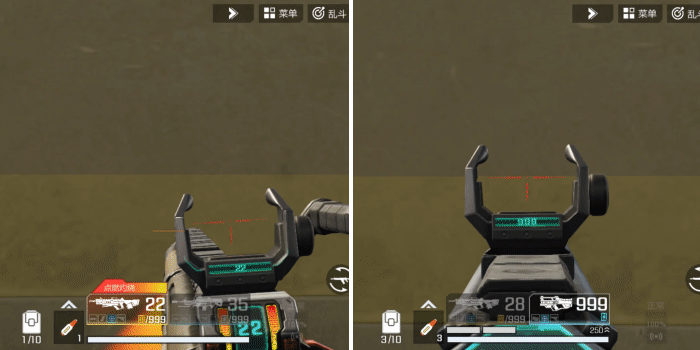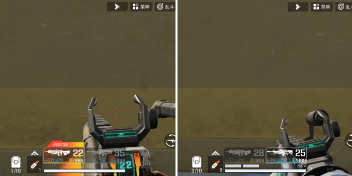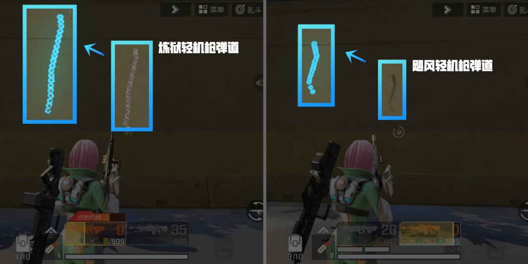 炼狱轻机枪(左)与飓风轻机枪(右)弹道对比