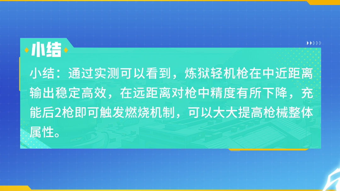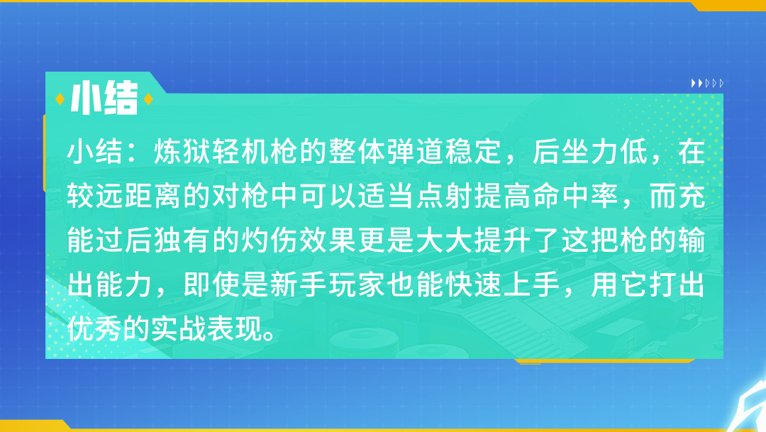 但较低的射速仍然让炼狱轻机枪在面临多个敌人的夹击时显得分身乏术,而在远距离的对枪中则因为精准度的大大降低,难以为队友提供火力援助。在有充足的烈焰手雷用于充能的情况下,烈焰轻机枪可以在大多数对枪环境中发挥优异性能,实战中要把握压制力强的特点,为团队创造人数优势!