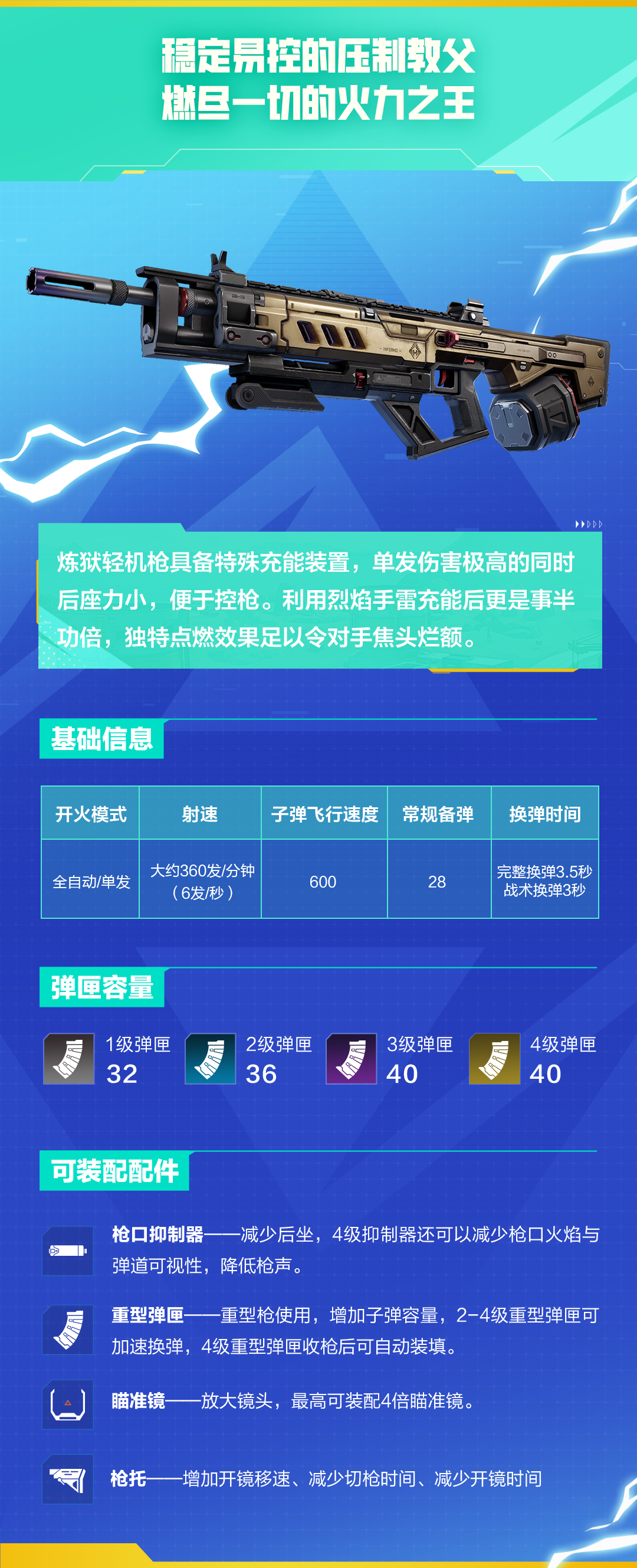 本期我们要介绍的主角,是具备特殊机制,战场压制力十足的的沙场獠牙——炼狱轻机枪!