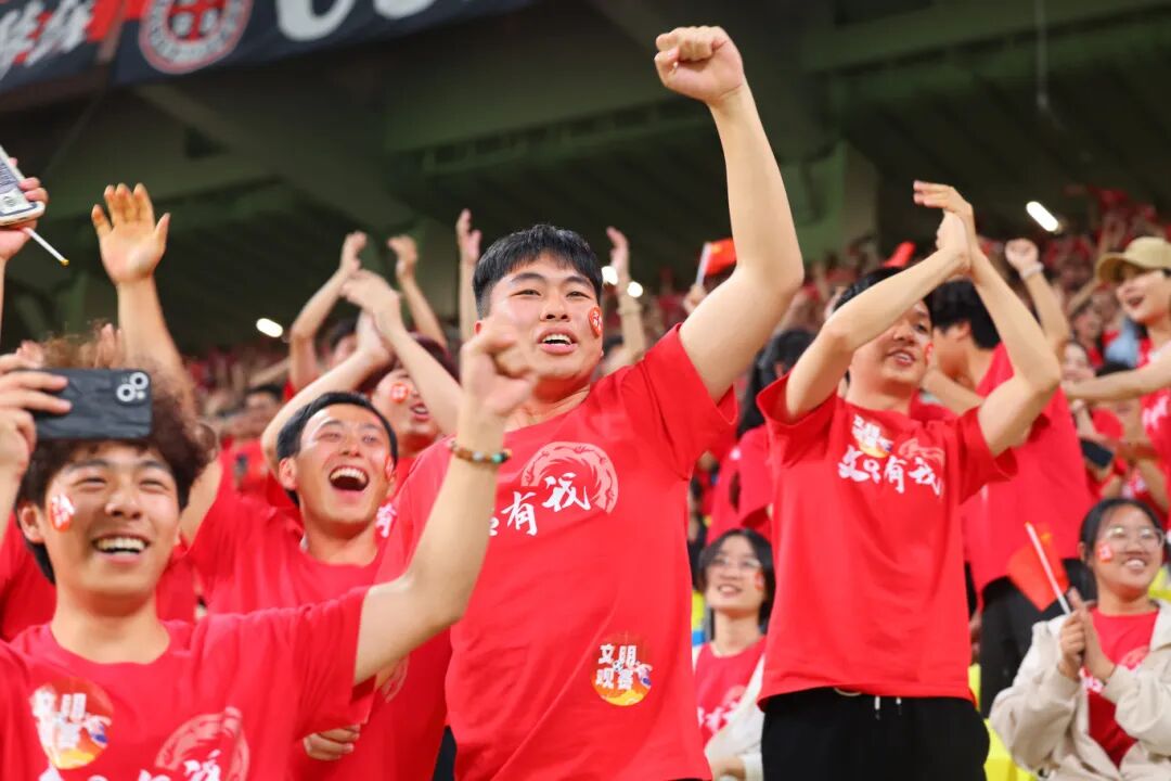 虽然是周三的比赛,但丝毫不影响成都人看球的热情,凤凰山体育场座无虚席。“本场比赛,我们邀请到了几百名球迷,他们当中有‘城市文明代言人’,有‘蓉耀青年’、有志愿者。”当广播响起,所有人的目光都投向公益看台,身着“文明有我”主题T恤的文明代言人们挥舞手中的国旗,和大家热情互动,观众们也毫不吝惜掌声,感谢他们为城市做出贡献。