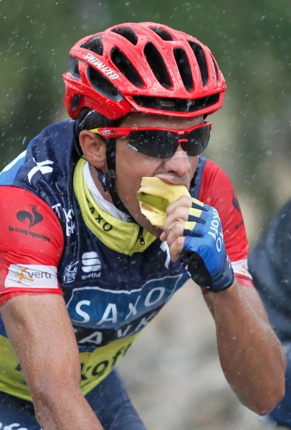 答:带食物的最好地方就是骑行服后面的口袋里。比如说,拿香蕉,首先,一只手握住把立旁边的车把,保持车身稳定。然后,另一之手伸到后面拿出香蕉,然后用手或嘴剥皮,开始吃。没吃完的部分,用皮包好,下次再吃。很多车手都能够双手撒把,一边滑行前进,坐直身体,取食食物。另一种方法就是在路口或观景台停下来吃东西。当然也可以在尾包或货架包里带食物,然后在路边来一顿小型野餐。最后,不要忘记骑后餐饮。作为一个骑车人,骑行中你要经常燃烧至少数百卡的热量。因此,当你到家后,你可以美美地享受一顿你最喜欢的食物。事实上,骑行结束后一小时内进食富含碳水化合物的食物是为第二天的骑行补充糖原的最佳时段。不过要注意,食物中不要含有大量的脂肪,例如一盘炸薯条或一块巧克力蛋糕。骑车比你吃的多?