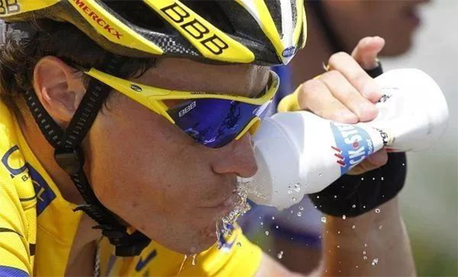 水不能提供热量、维生素或矿物质,却是身体机能的必需之物。水可以帮助消化,缓冲器官,让体温不会在运动时超出范围。其实,HO非常重要,人体重的55-65%都是水。骑车的时候,肌肉产生的热量是休息时的 30-100 倍。身体“灭火”的主要方式就是加快出汗。夏天,特别热的时候,每个小时可以流失2升(大约 67 盎司)的液体。如果不补充,你的能量输出将在 30分钟内下降。一项研究显示,受过训练的车手在 65%的最大摄氧量下,如果不喝水,几乎无法完成2个小时的骑行。Amie Baker 医学博士说,在超级马拉松中,脱水和屁股疼是选手退出的两大主要原因。Amie Baker博士是一名冠军车手,也是 Bicycling 杂志的健康顾问团成员。Edward Coyle 博士是德克萨斯大学人体特征实验室主任。他的研究显示,车手每流失1夸脱水(约0.946升),心率上升 8次,心脏功能下降,体温升高。Coyle 博士说,脱水可能增加肌肉新陈代谢压力,糖原消耗更快。它还会降低血液流向皮肤的速度,减缓排汗,导致体内温度升高,而且还延长了液体被吸收进入血液的时间。更糟的是,当你感觉口渴的时候,身体已经流失了体重2%的水分——大概1夸脱(约0.946升)。传统的说法是每天喝8盎司水(约236.568ml),不过这是对不运动的人说的。骑车人要根据个人的健康状况、性别、体型、情况等因素决定饮水量。基本原则就是--Mitch Kanter Ph.D.建议——每燃烧1卡路里热量,应该喝 1ml 的水。Mitch Kanter 博士是伊利诺斯州佳得乐(Gatorade)运动科学研究所的主任。“如果每天燃烧大约 3500 卡的热量,你就需要大约 3.5 升的水。大概是 14 杯半。”不过,他建议说,最好通过下面五个简单的方法来测量身体缺水的情况。你在普通工作日每天排尿小于三次?