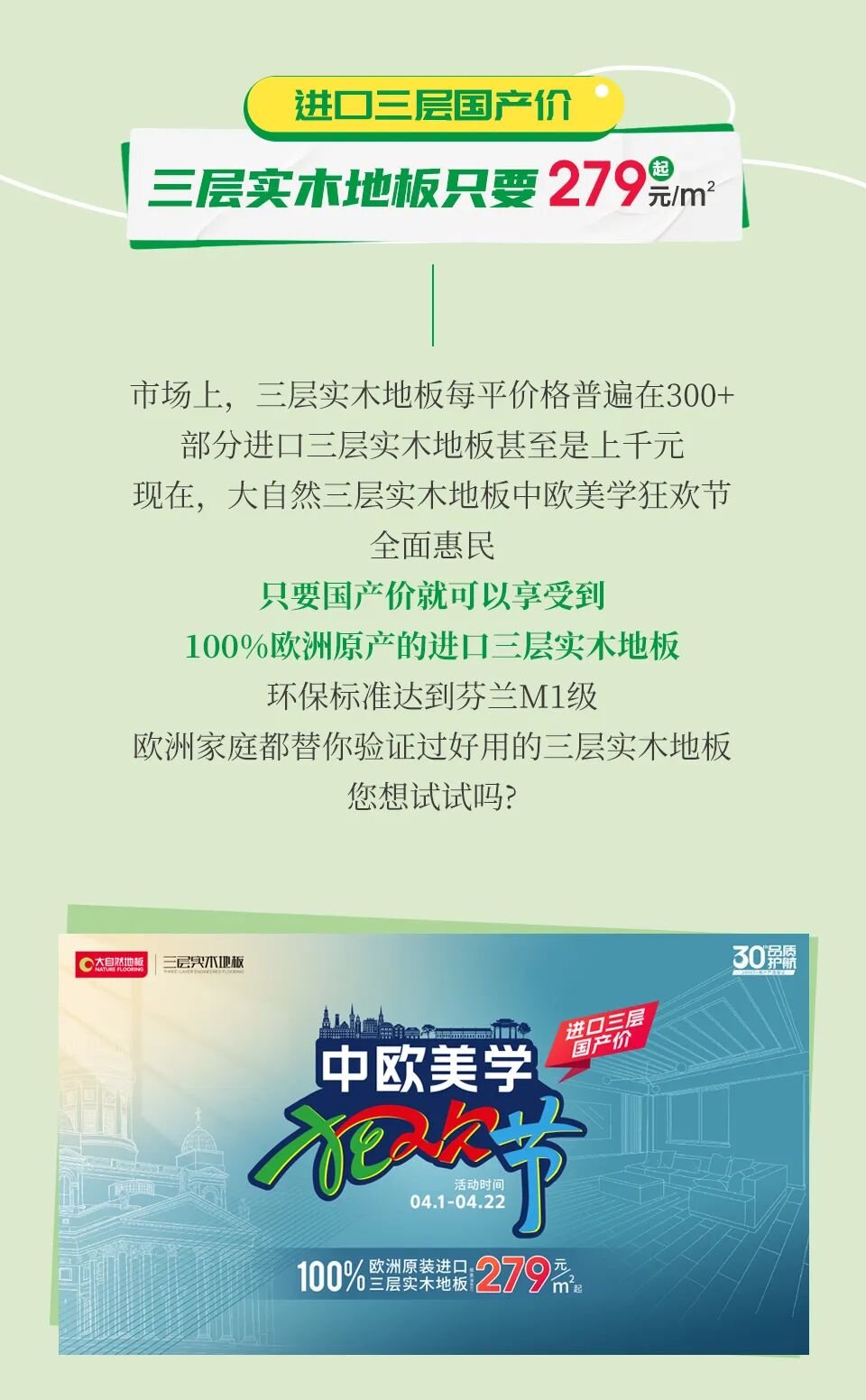 此外,大自然地板还研发出获得国家专利的“钢扣固装方案”,以特制合金钢扣提供锁力连接地板,再通过测算各地环境变化数据,匹配以合适的安装方案,有效解决地板容易变形和膨胀收缩的问题。
