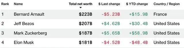截至4月8日马斯克在全球富豪榜的排名已跌落至第四名。扎克伯格的身家为1870亿美元,今年以来增长了589亿美元;马斯克的身家为1810亿美元,今年以来下跌了484亿美元。(券商中国)