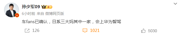 曝华为将与日系车企合作 消息称日系三大汽车品牌之一将接入华为智驾系统
