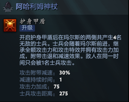 让玛尔斯获得一排的士兵,不断击退并且攻击前方的敌人,经过改版后的效果大不如以前,基本上也不出了。