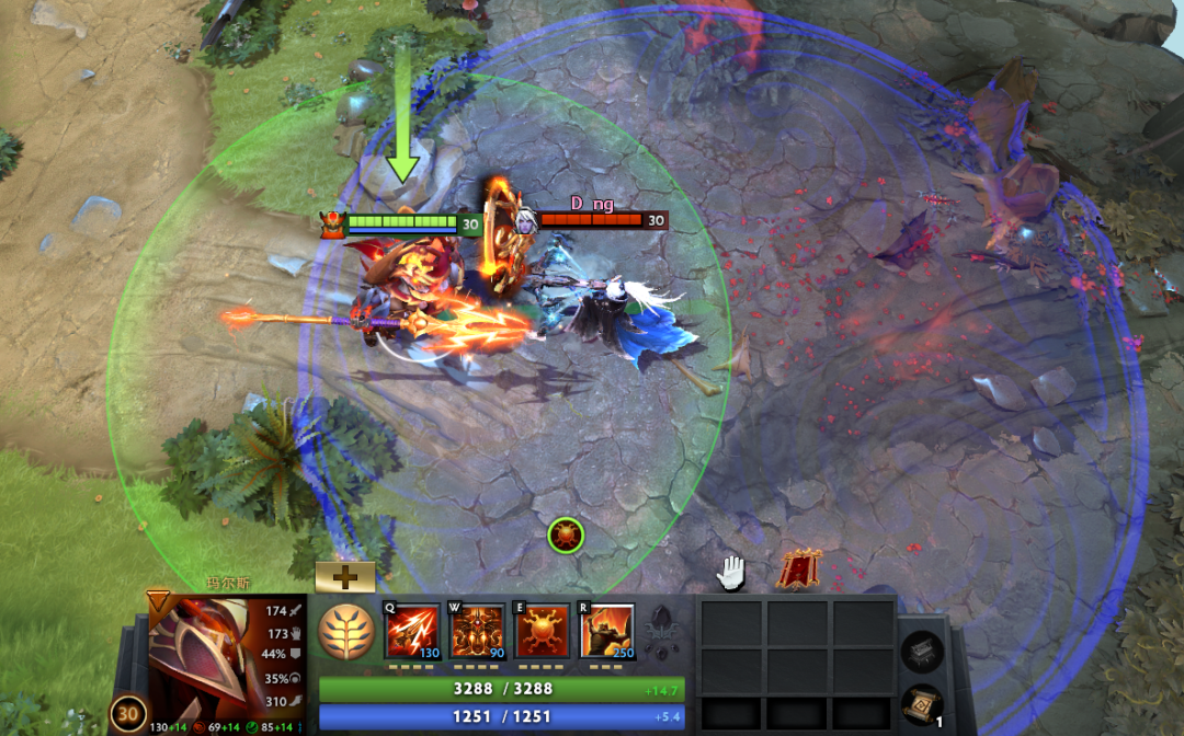 2、中期:有大招就去杀人,如果对方是虚空假面、水人之类比较难配合击杀的,那么优先刷钱出闪烁匕首。玛尔斯拿到闪烁匕首后就可以发起自己的GANK节奏了。这时候因为你可以快速近身目标,可以利用1技能起手。比起先大招再1技能,直接1技能起手,即使对方是帕克、蓝猫之流,也很难躲掉。1技能现在施法后摇很短,用了马上接大招,可以无缝控制。如果辅助是天怒法师、邪影芳灵等爆发较高的,果断开诡计之雾。一般需要先手的都是脆皮、高爆发的敌方核心,多大住几个人非常简单,但是贴身放1技能的时候一定要把握好距离,极限贴着的情况下,1技能很容易空掉。要注意对方围着你绕圈圈,这时候是有可能会矛空的。另外像击杀虚空假面等又肉又有位移技能的英雄时,要想一下一套够不够击杀,如果不够击杀,可以先把他矛树上打一顿,等他跳走后开相位鞋追上去框住接着打。基本上上了就不回头跑了,有盾牌你不跑比跑死的还慢一些,实在不行可以举着盾跑,但是实战中这招除非对付远程物理输出,不然实在没太大用。