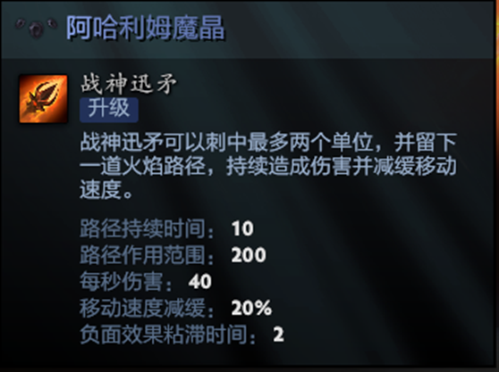 升级1技能,让他可以刺2个单位,并且让他可以提供额外的火焰路径伤害。提高的伤害让1技能可以远程清兵线,并且打团的时候能控制的人更多了,是法系玛尔斯必出的。