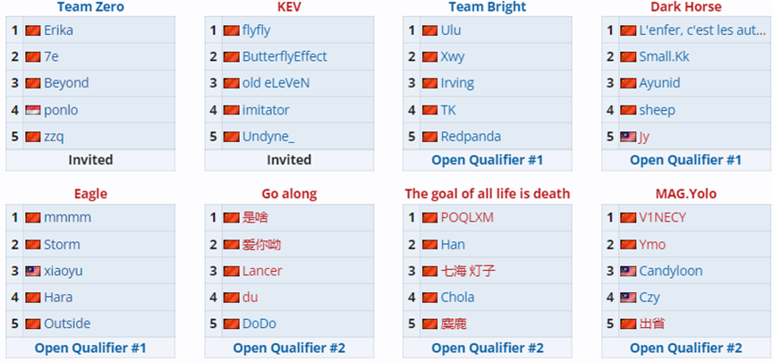 参赛战队:8支直邀战队+8支瑞士轮出线战队