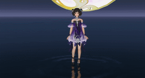 开启外装特效后将会有两段主动表现动作,轻巧倚坐于一轮宝石弯月之上。