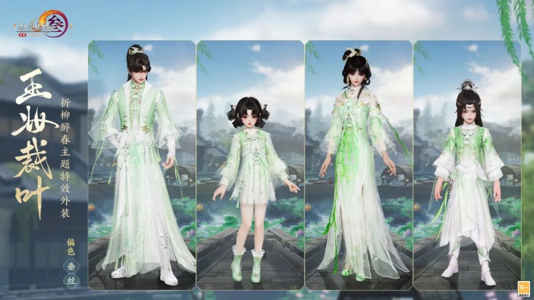 更有专属服饰特效,手势婉转,指尖轻启,柳叶如烟摇曳生姿,一抹碧色浮于空中,韶光向暖,春意盎然~
