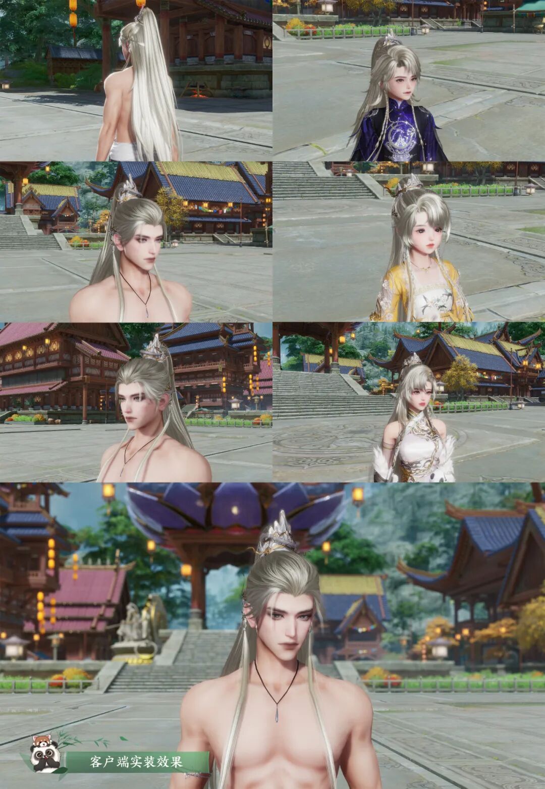 礼盒内含:布料2.0特效成衣+绑定款定制黑发+定制白发+特效背部挂件“幻星筒”(附赠黑发均为绑定),售价52,000通宝,不可使用折扣券。