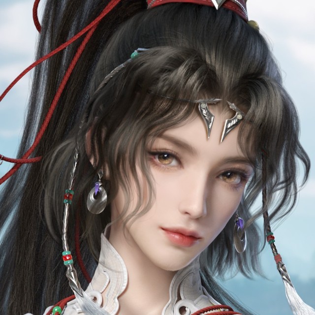 女款刘海微微卷起,清丽之上更添几分俏皮,长发自然披散至腰间,蓬松如云,柔软丰盈。金色辫发编织精巧,耳坠辉光流转,秀丽雅致。