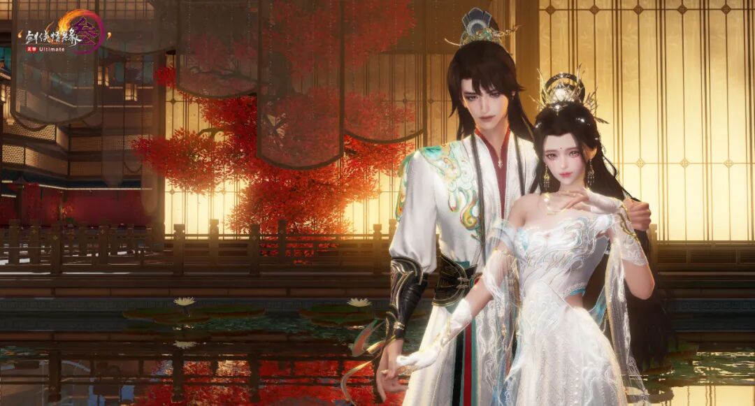 男款以夜色为衫,层纱晕染星汉璀璨,衣袂翻飞之间,仿佛星河欲转千帆舞,神秘优雅的气质淋漓尽显。