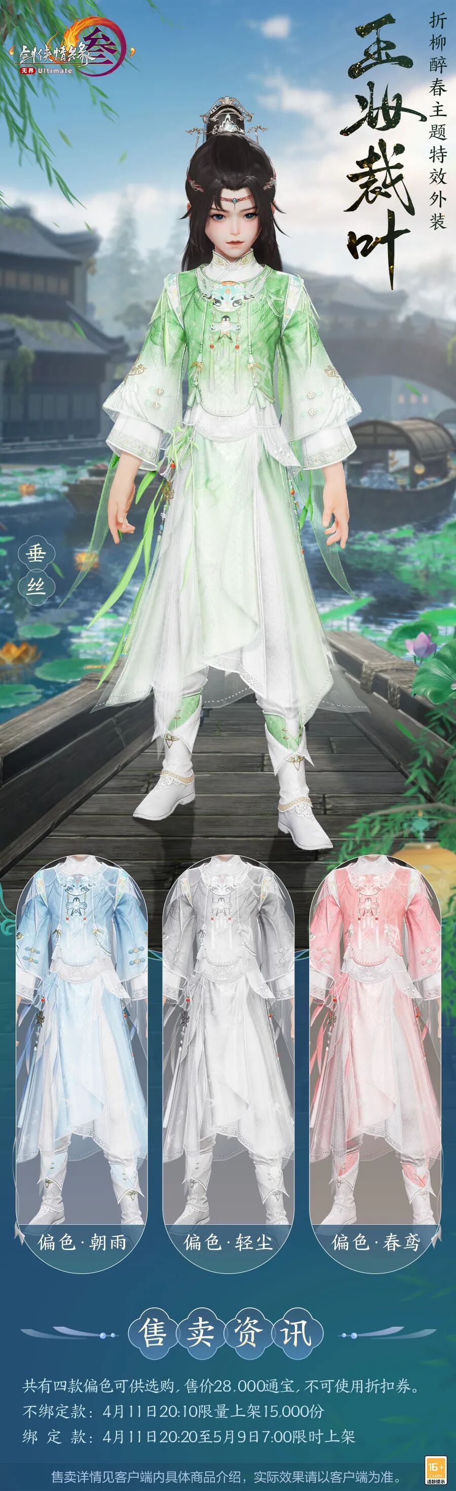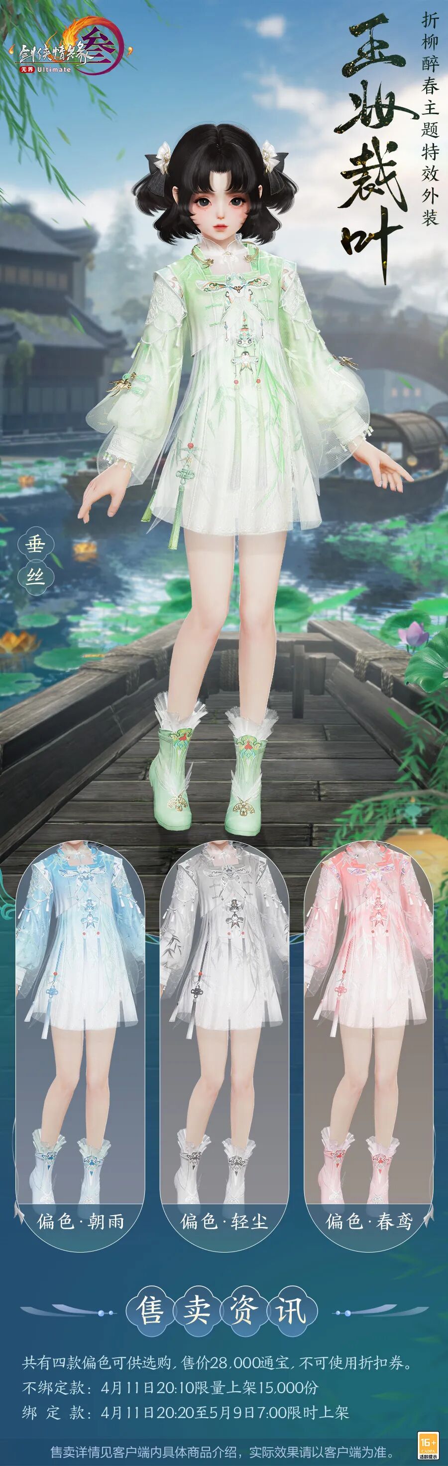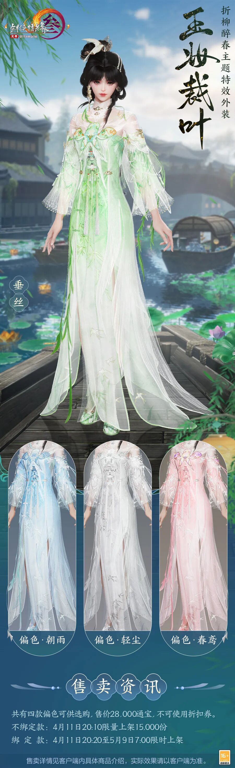 更有专属服饰特效,手势婉转,指尖轻启,柳叶如烟摇曳生姿,一抹碧色浮于空中,韶光向暖,春意盎然。
