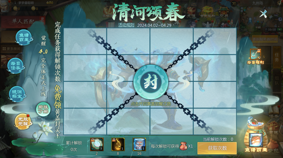 【鱼塘霸主】【每日任务】【镜渊探宝】【无双觉醒】