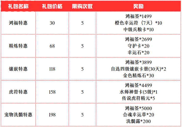 注*之前的购买记录在本次活动开启同步保留,已买空礼包本次重开无法购买。