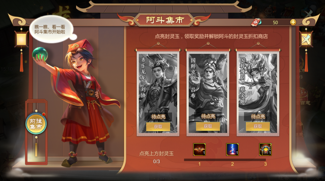除了点亮奖励之外,点亮封灵玉还可以解锁阿斗的封灵玉折扣商店。每层折扣商店可选购一个封灵玉。本次活动重开将保留仙术师们的奖励领取记录和商店解锁/购买记录,不进行重置。