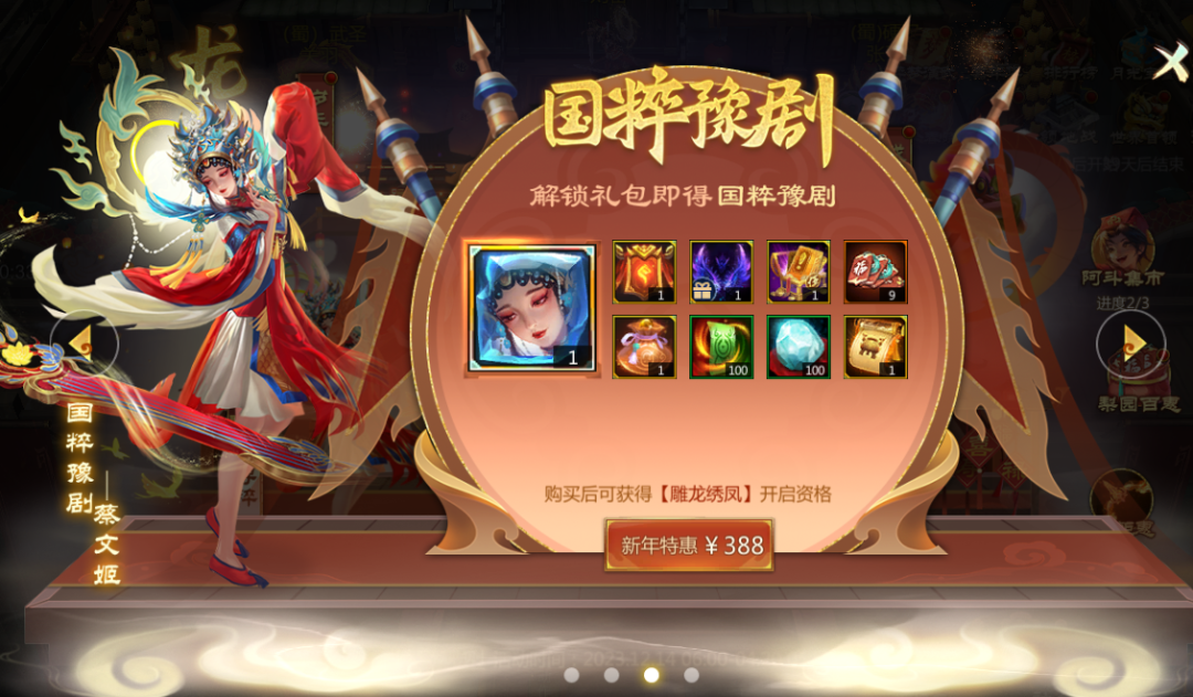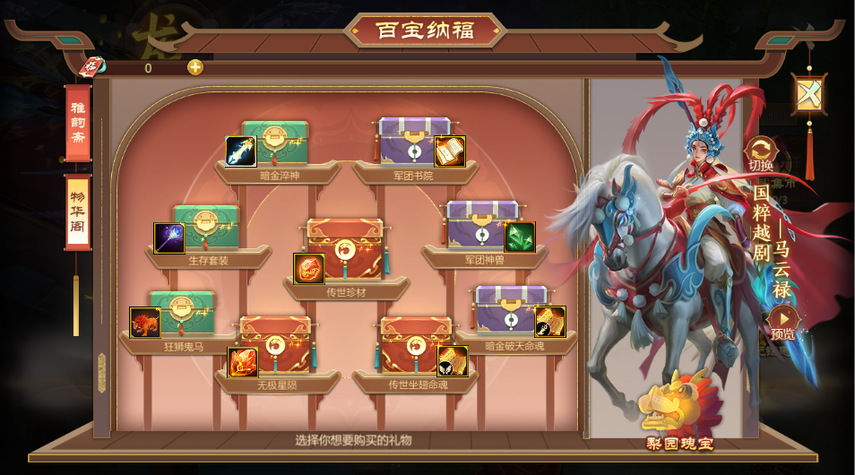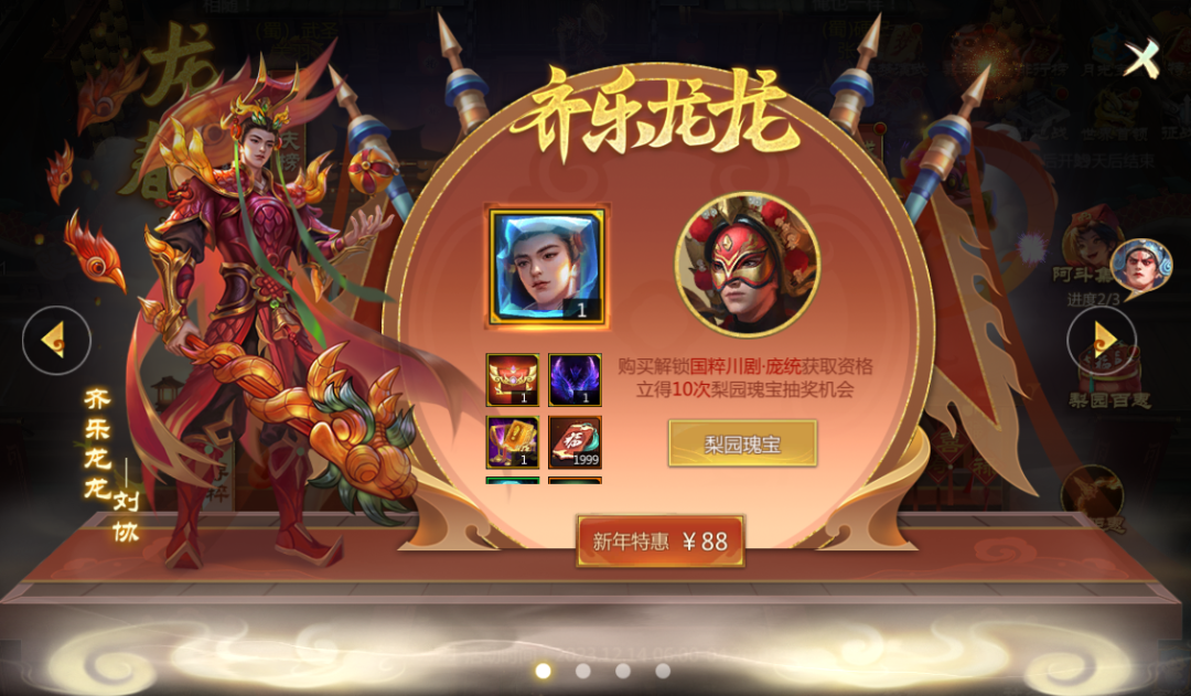 在四方寻粹中有【齐乐龙龙】【国粹京剧】【国粹豫剧】三份新年直购礼包,仙术师可以按需购买~